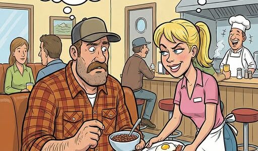 Das Straßencafé war brechend voll, wie man es nur von Raststätten kennt – Stiefel kratzten über die Fliesen, Krüge klirrten, und draußen dröhnten Motoren im Leerlauf wie ein unruhiger Herzschlag. Ein Fernfahrer drängte sich mit breiten Schultern und kilometerverschmierter Jacke…