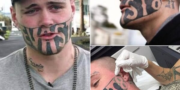 Arbeitsloser Vater mit Gesichtstattoo bettelt um Job