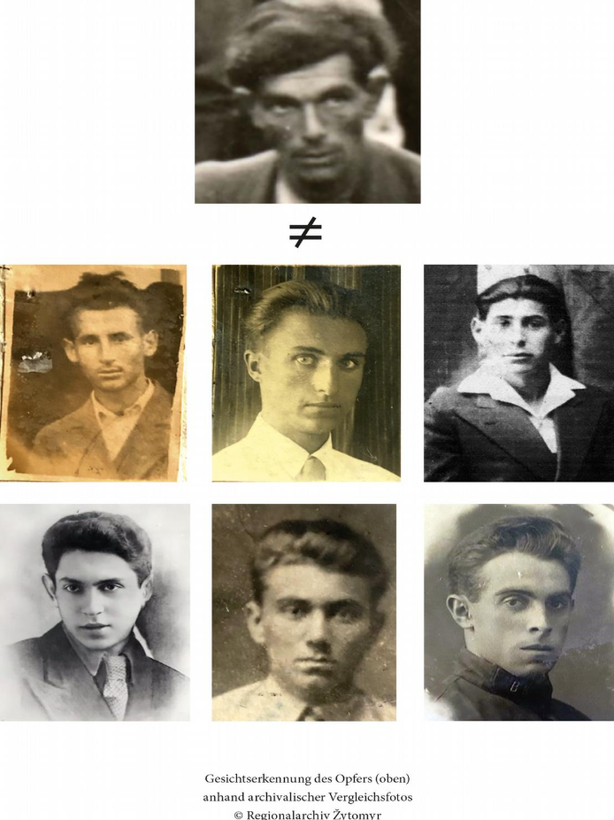 Bien que le visage de la victime soit relativement reconnaissable, son identité n’a pas été établie. Ceci reflète une réalité courante des massacres en Europe de l’Est, où les nazis omettaient souvent de consigner les noms des personnes tuées, contrairement à d’autres contextes où les archives administratives étaient plus nombreuses. Les institutions et les projets de mémoire (recueil de témoignages, archives et bases de données) poursuivent leurs efforts pour redonner un nom aux victimes restées anonymes.