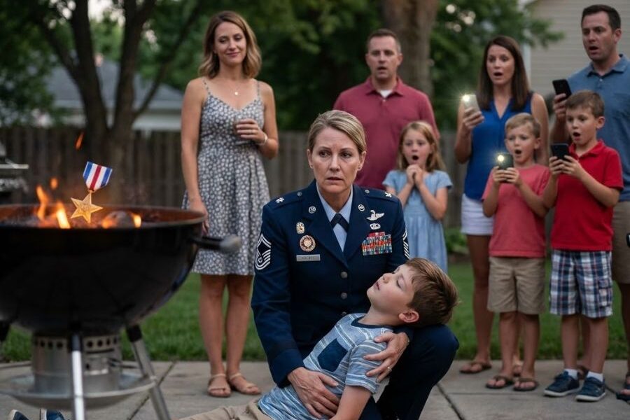 My son, Noah, lunged forward. He couldn’t stand to see his mother’s honor burned. He reached toward the grill to save the medal.