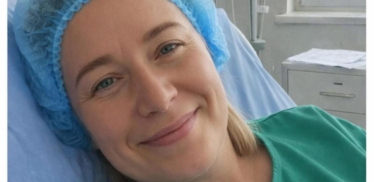Sie liegt im Krankenhausbett und trägt ein stilles Lächeln –