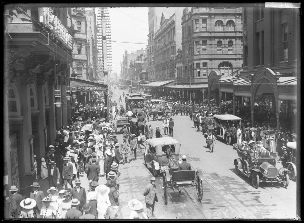 Arrival of “Waratahs”, Macquarie St Sydney, NSW (1915)